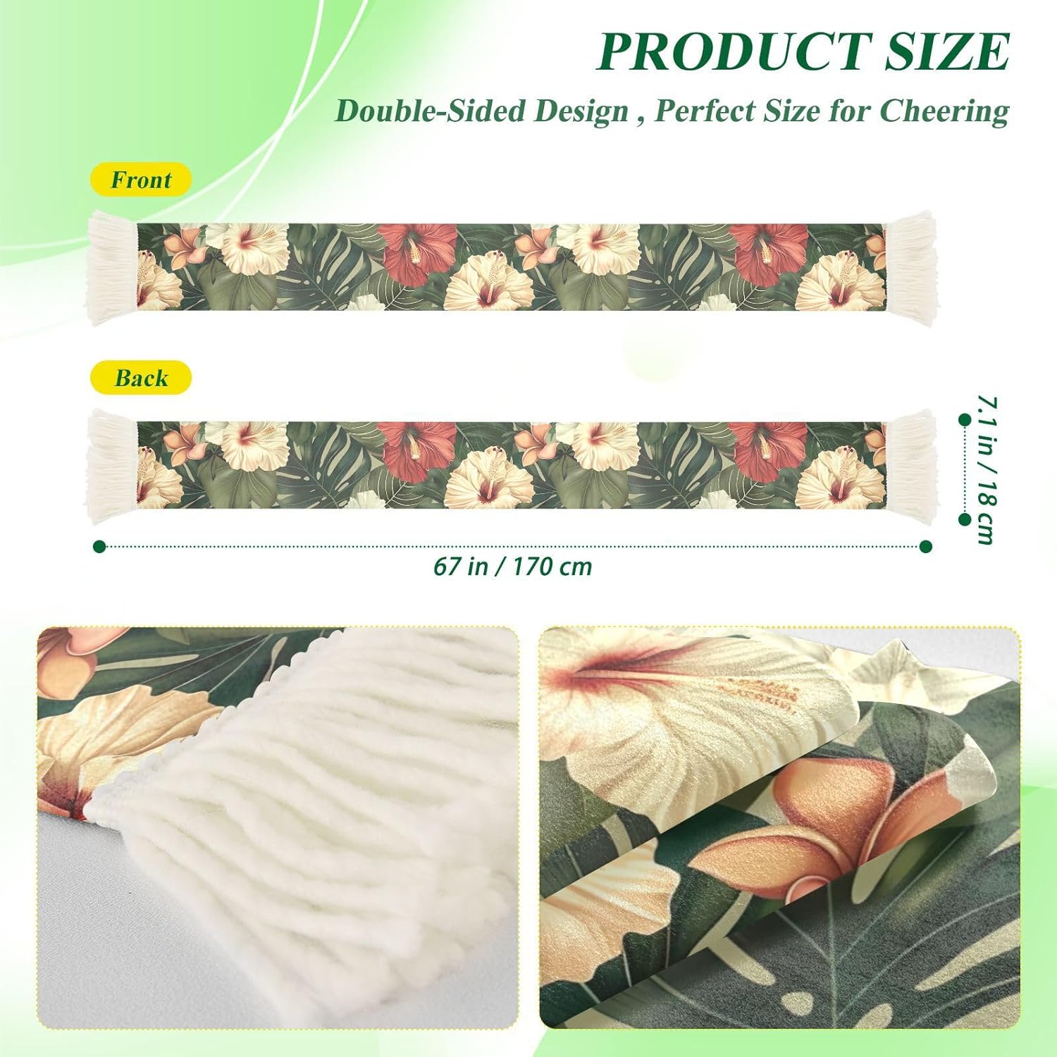 Whether you are cheering from the stands or watching from home, this sports fan scarf towel is the go-to accessory for passionate supporters everywhere. Crafted from 100% polyester quick-dry fabric, it absorbs sweat instantly and dries fast so you stay focused on the game, not the heat.At 70 x 7 inches, this soccer scarf is long enough to wave high, wrap around your shoulders, or hold up your favorite rally message. The 60-inch print zone offers a wide canvas for vivid, eye-catching designs that hold their color through repeated use and washing.The brushed fabric surface feels smooth and gentle against the skin, making it comfortable to use as a sweat towel or a display scarf. Decorative fringe on both ends gives it an authentic fan scarf look that stands out in any crowd.This rally towel scarf also makes a thoughtful gift for birthdays, holidays, or any sports fan in your life. It is suitable for soccer matches, fan events, outdoor activities, and group cheering sessions. in white and black to pair with a wide range of printed designs.Care is simple: machine wash in water under 40 degrees C, no bleach, no dry cleaning. Hand washing and light ironing are also safe. A durable, practical, and spirited accessory built for real fans.